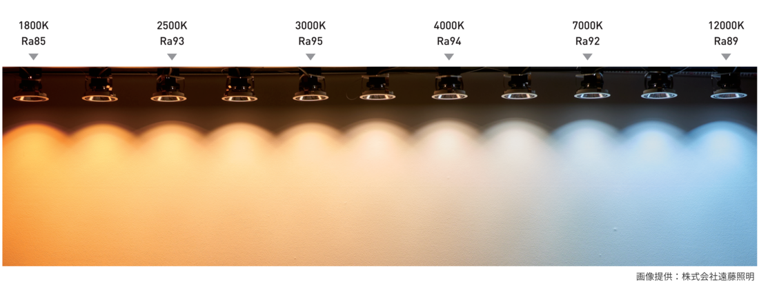 1800K~12000Kまでの幅広い色温度で自然な光環境の再現が可能となりました。(従来器具は2700K~6500K)