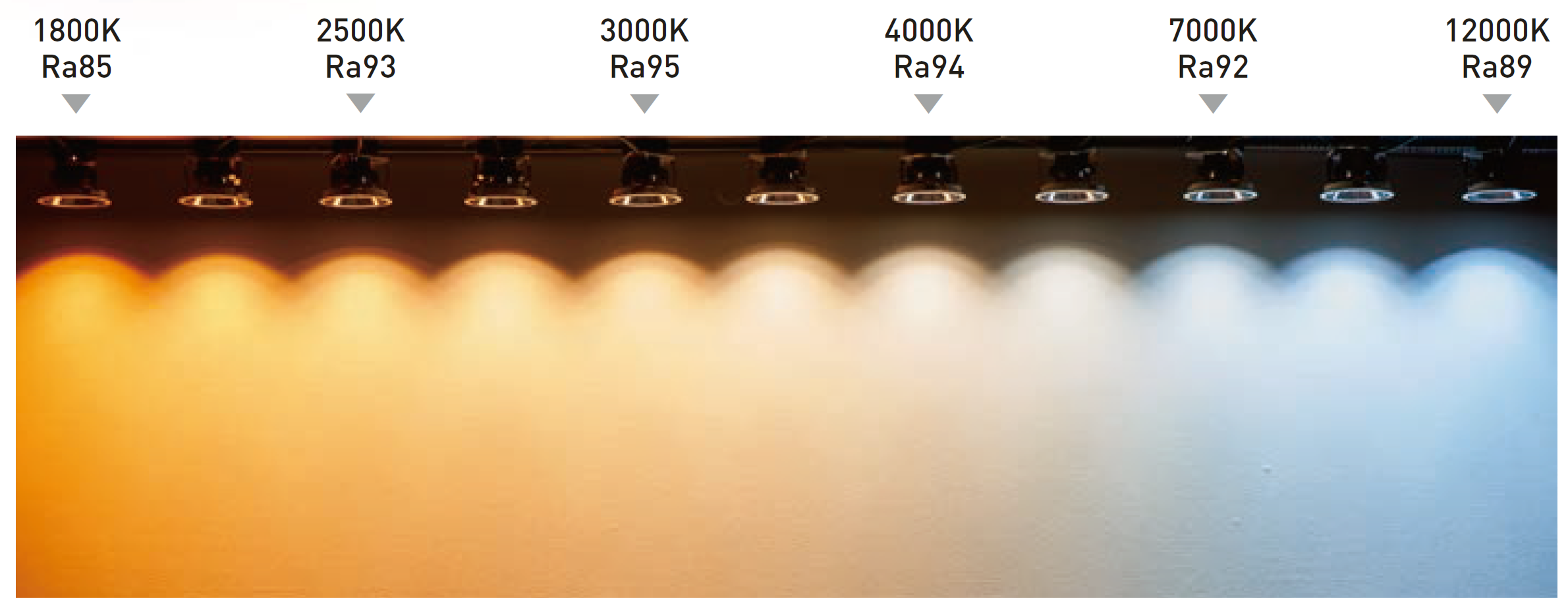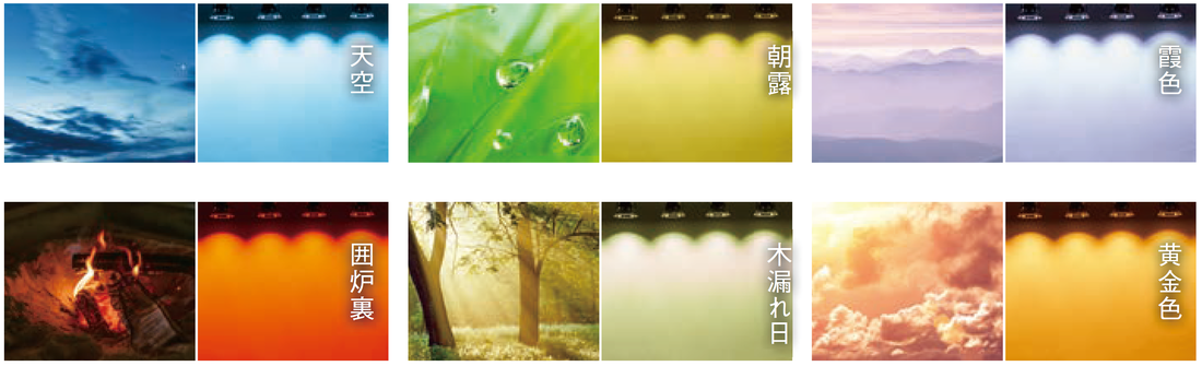 1800K~12000Kまでの幅広い色温度で自然な光環境の再現が可能となりました。(従来器具は3000K~5000K)